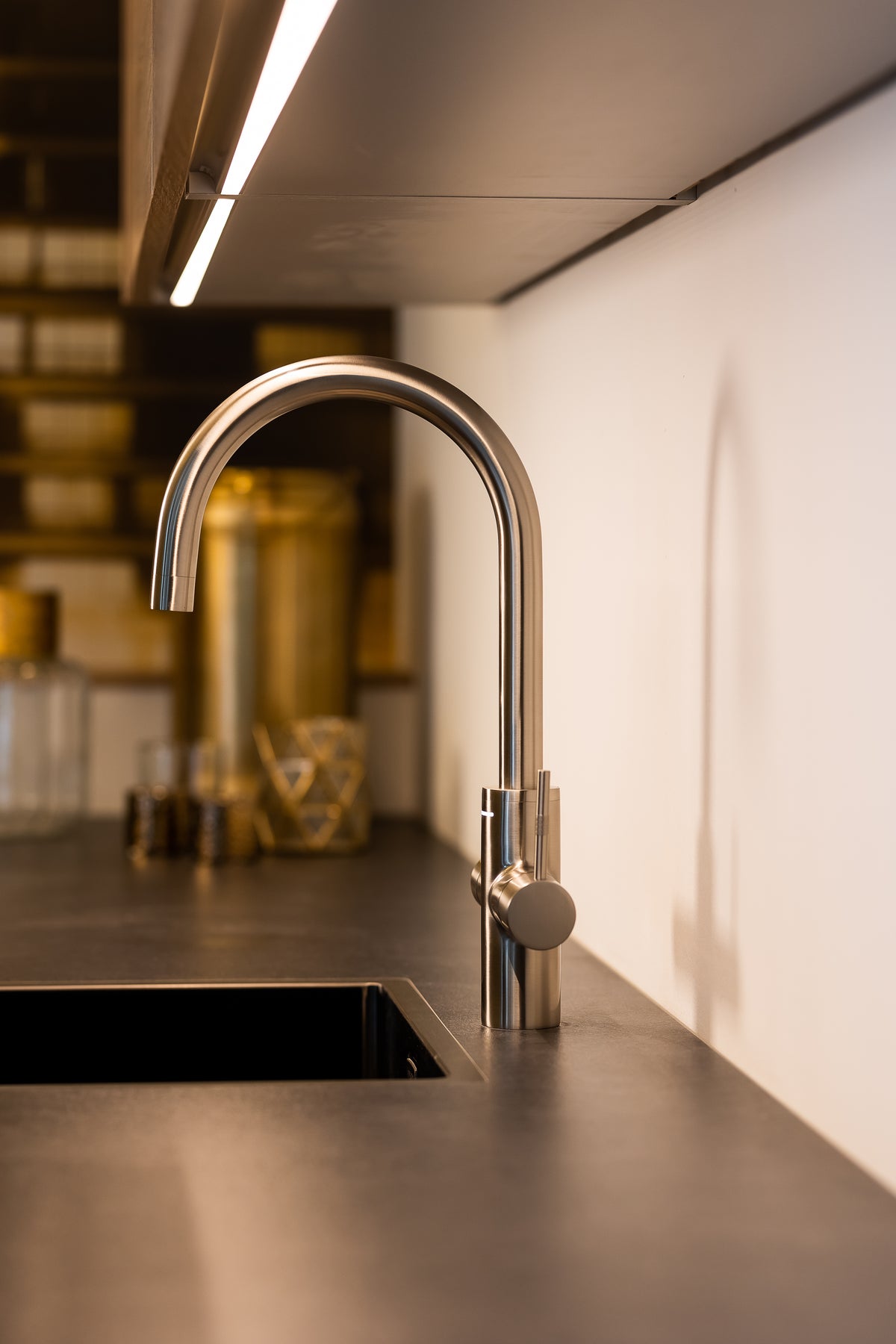 ORBIT-serien er klassisk design armatur bygget i meget høj kvalitet. Runde former og enkelt digital betjening gør vandhanen til et unikt møbel i dit køkken.