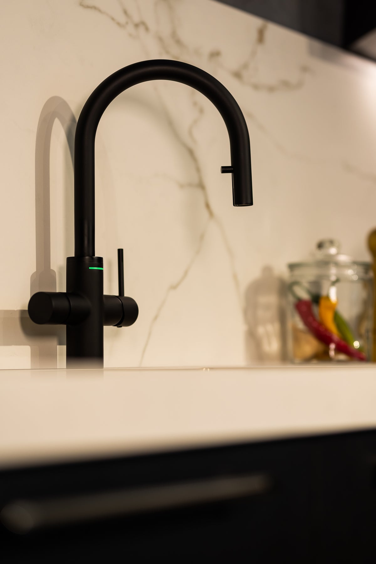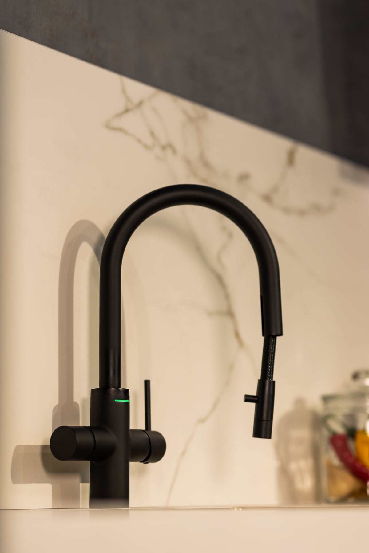 - Børnesikret: Systemet kan børnesikres ved at slå “Børnelås” til inde i den medfølgende app UNITO Anywhere. Vandhanen fjerner derefter muligheden for kogende vand i funktionsbetjeningen, indtil den slås til igen.
