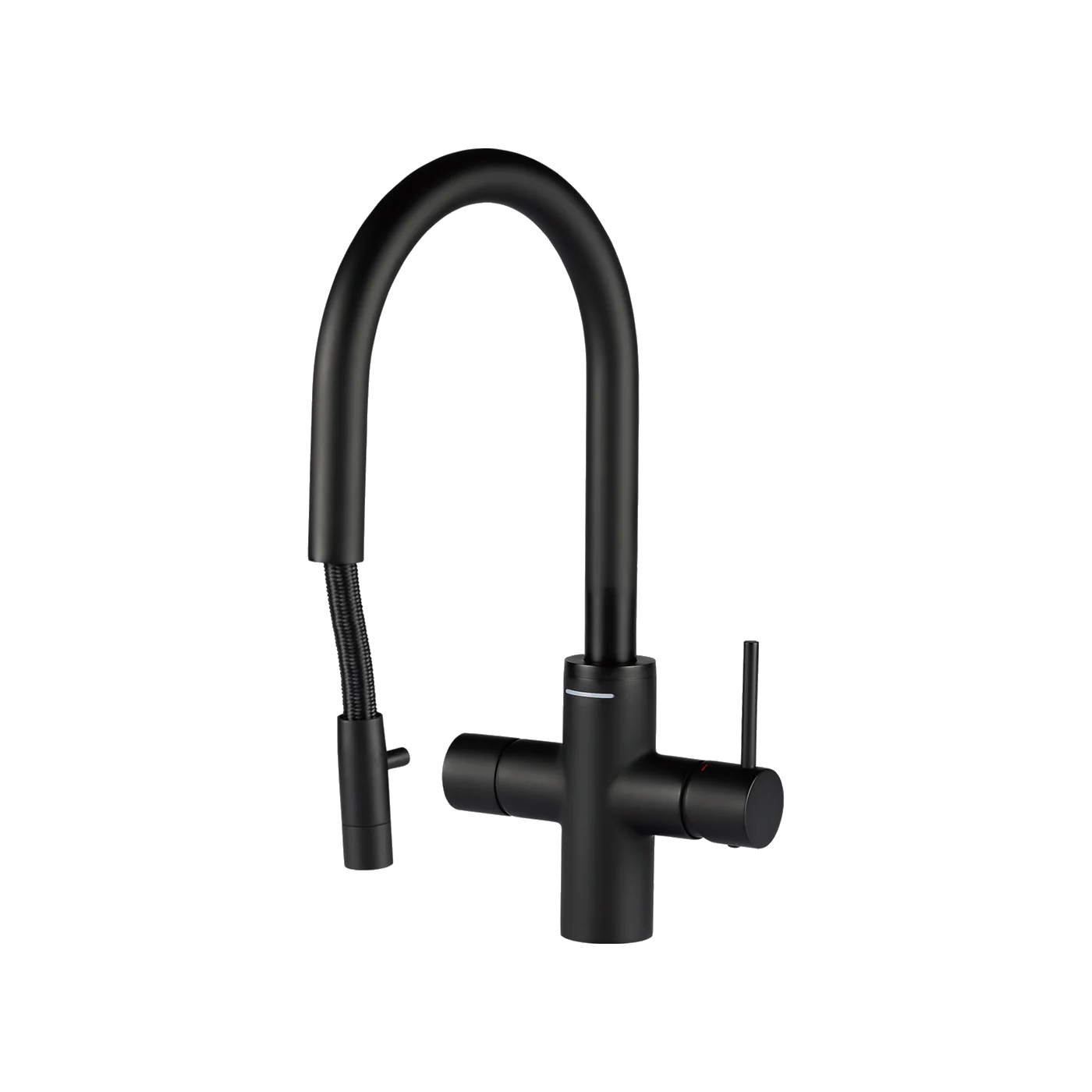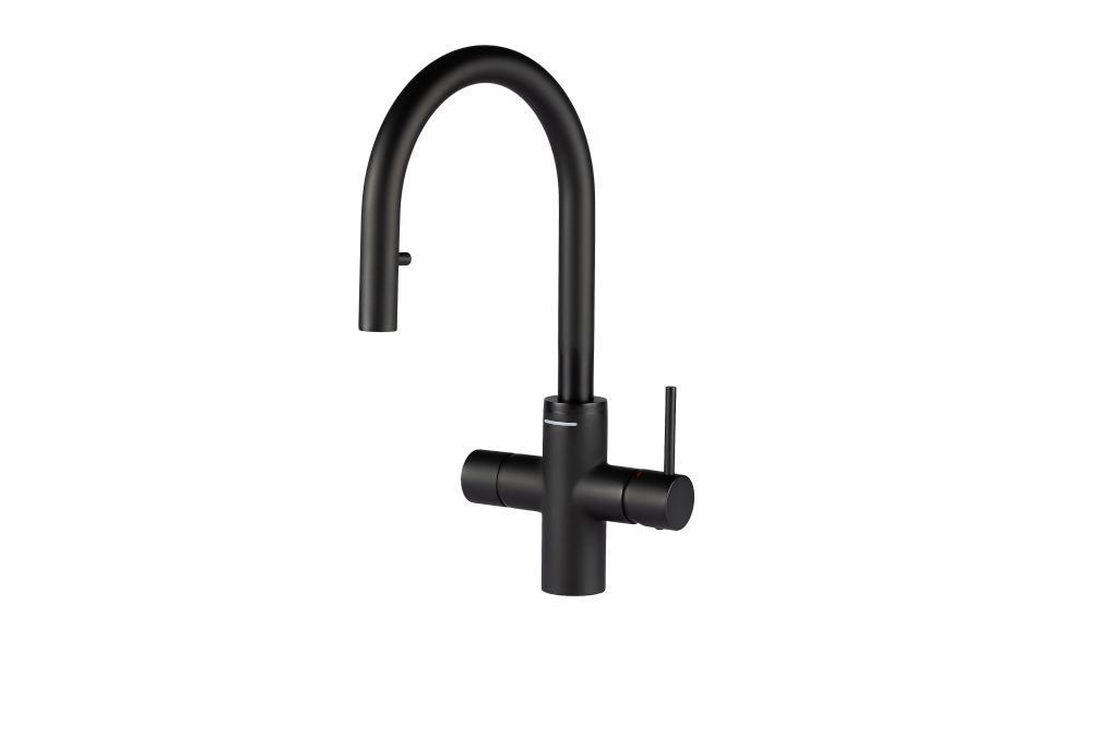 Som en del af COSMOS-serien, er Star 24CP i sort et helt nyt og moderne look af køkkenvandhaner i T-form. Den er opbygget i høj kvalitet, designet til ergonomisk brug og har intuitiv betjening i form af 180° svingbar tud, LED-indikator vindue og app-betjening.