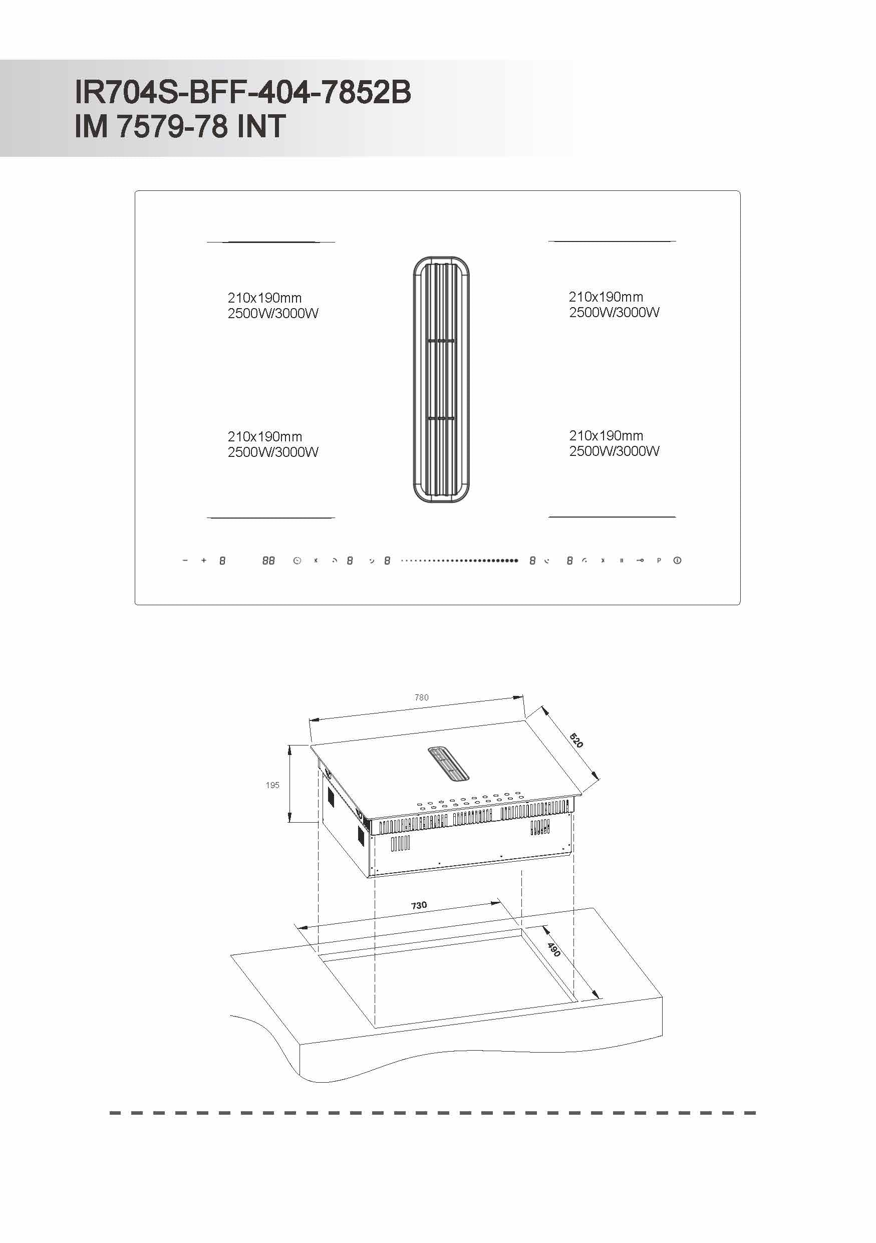 - Effekt: 4 x 21 x 18 cm (2,5/3,0 kW (3,5 kW totalt))