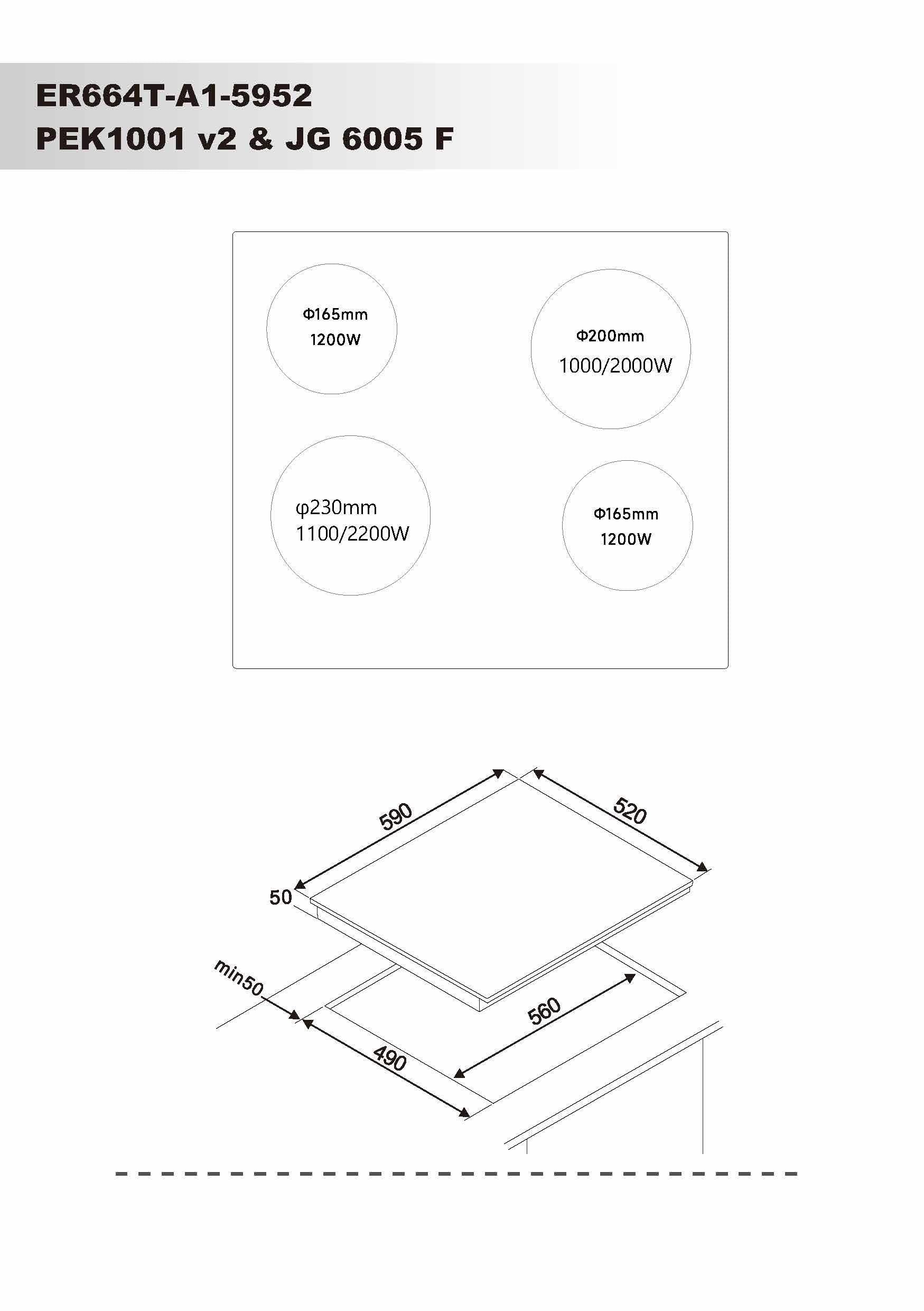 JG 6005 F - Glaskeramisk platetopp