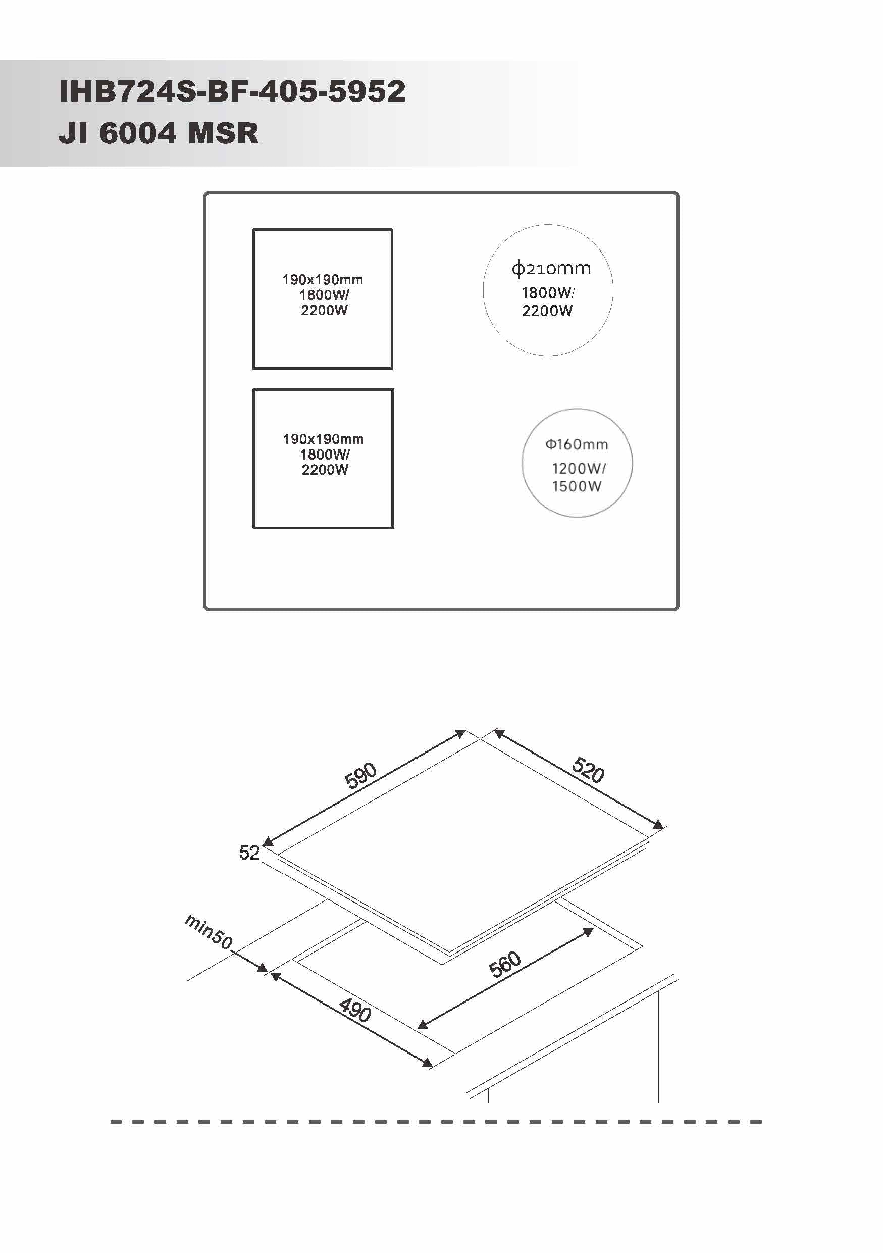 - 2x 19x19 cm zone + Ø21 cm + Ø16 cm zoner