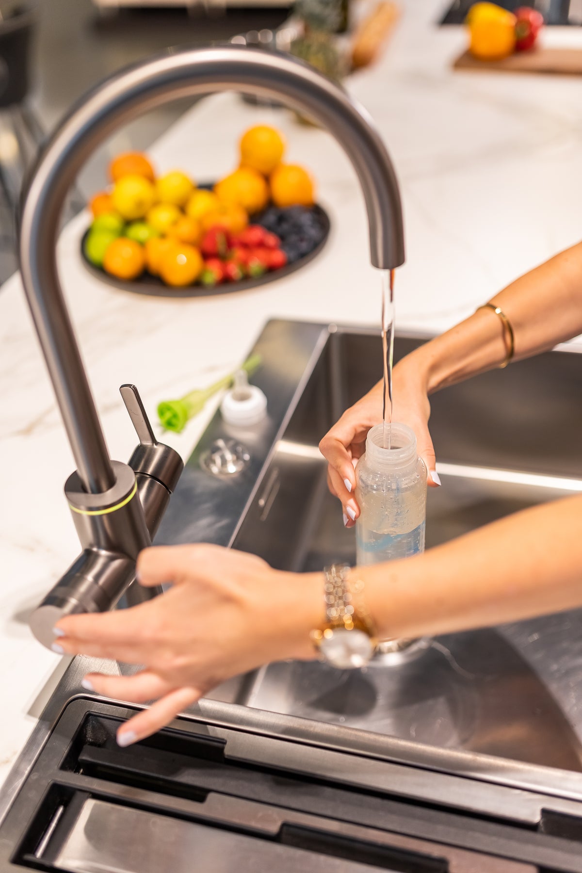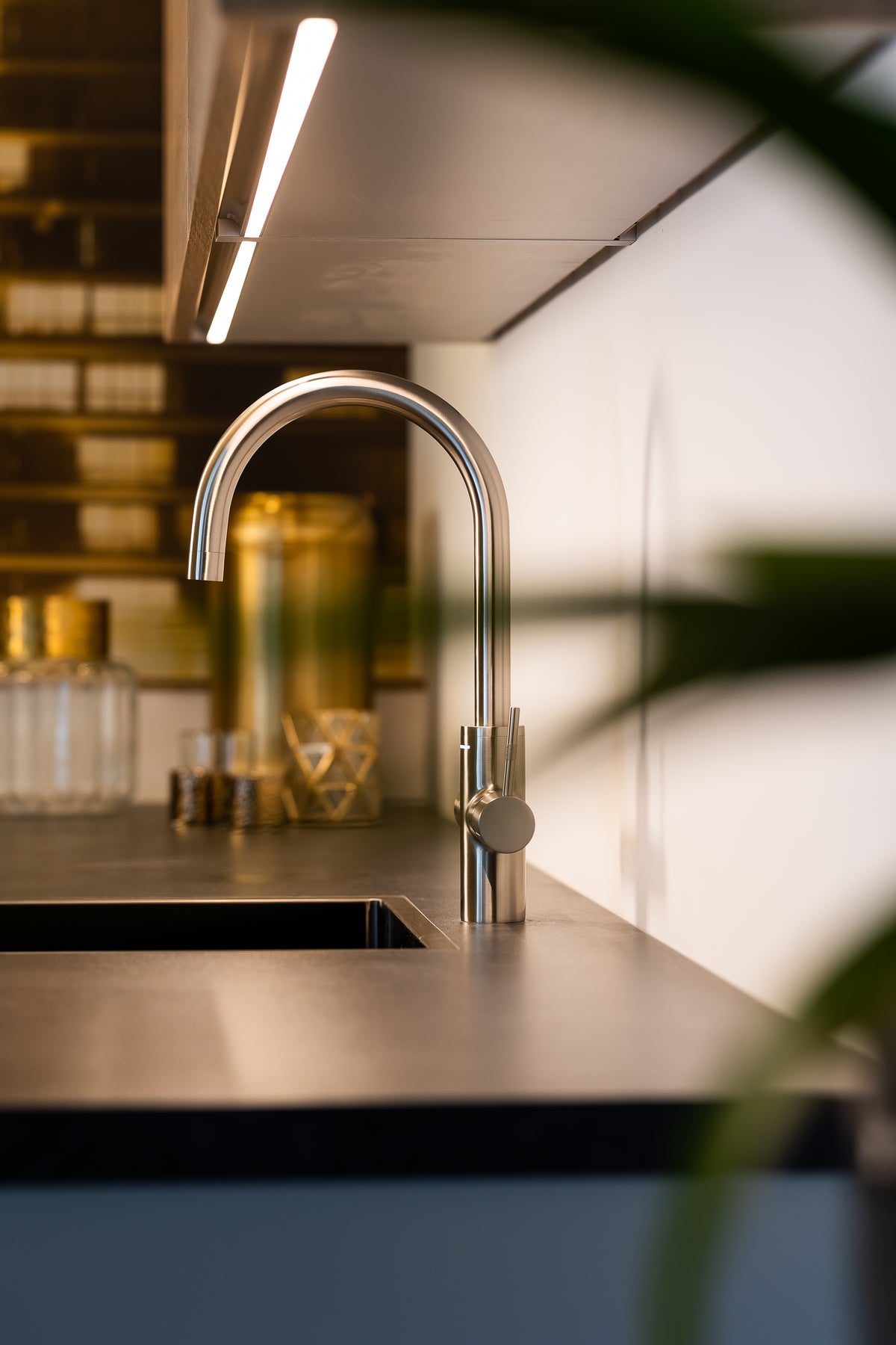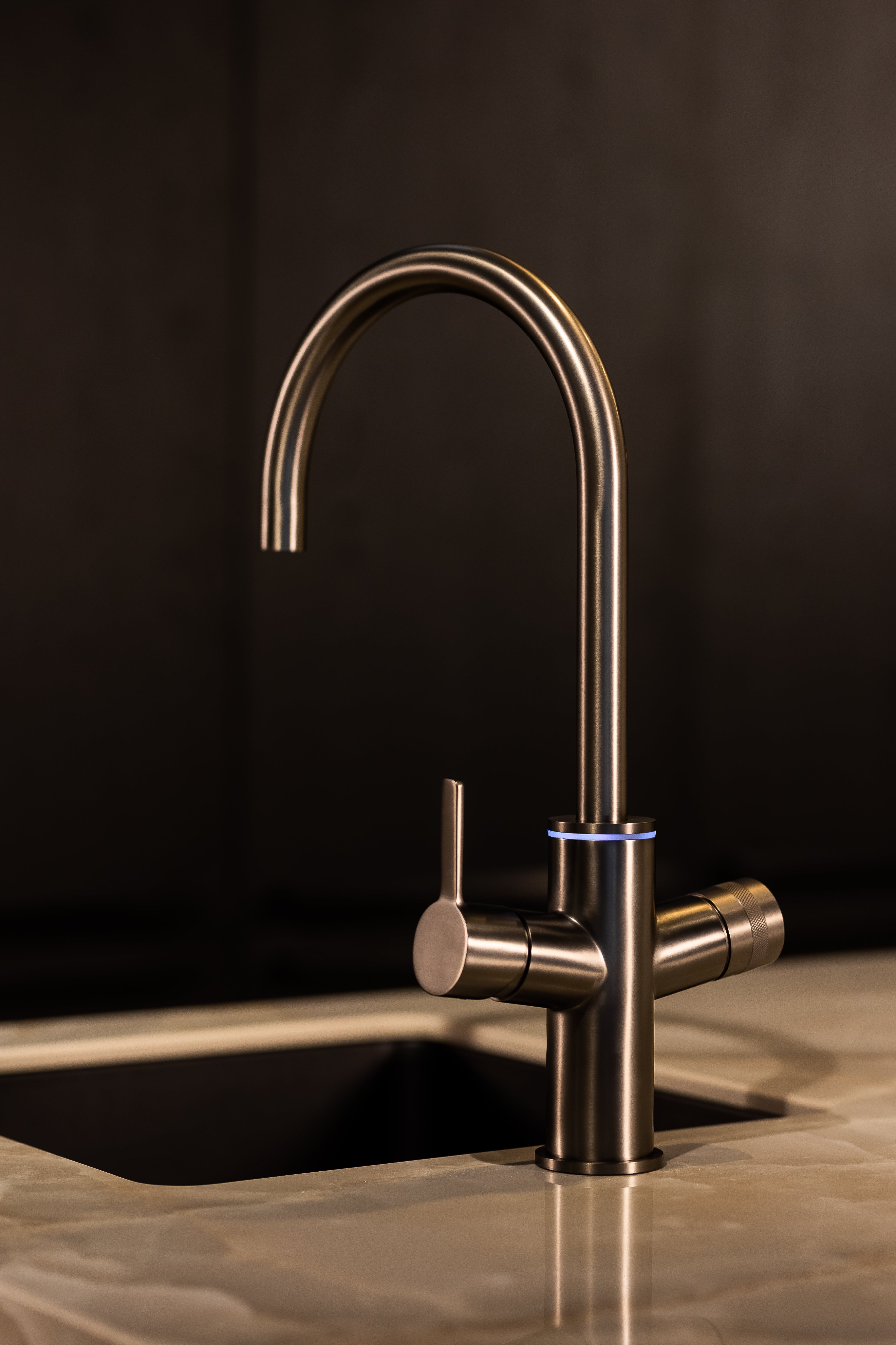 Fargen guncolor er siste moderne utseende som er en kombinasjon av svart og børstet stål. Den lett børstede designen i mørkegrå farge gir et sublimt utseende på kjøkkenet ditt