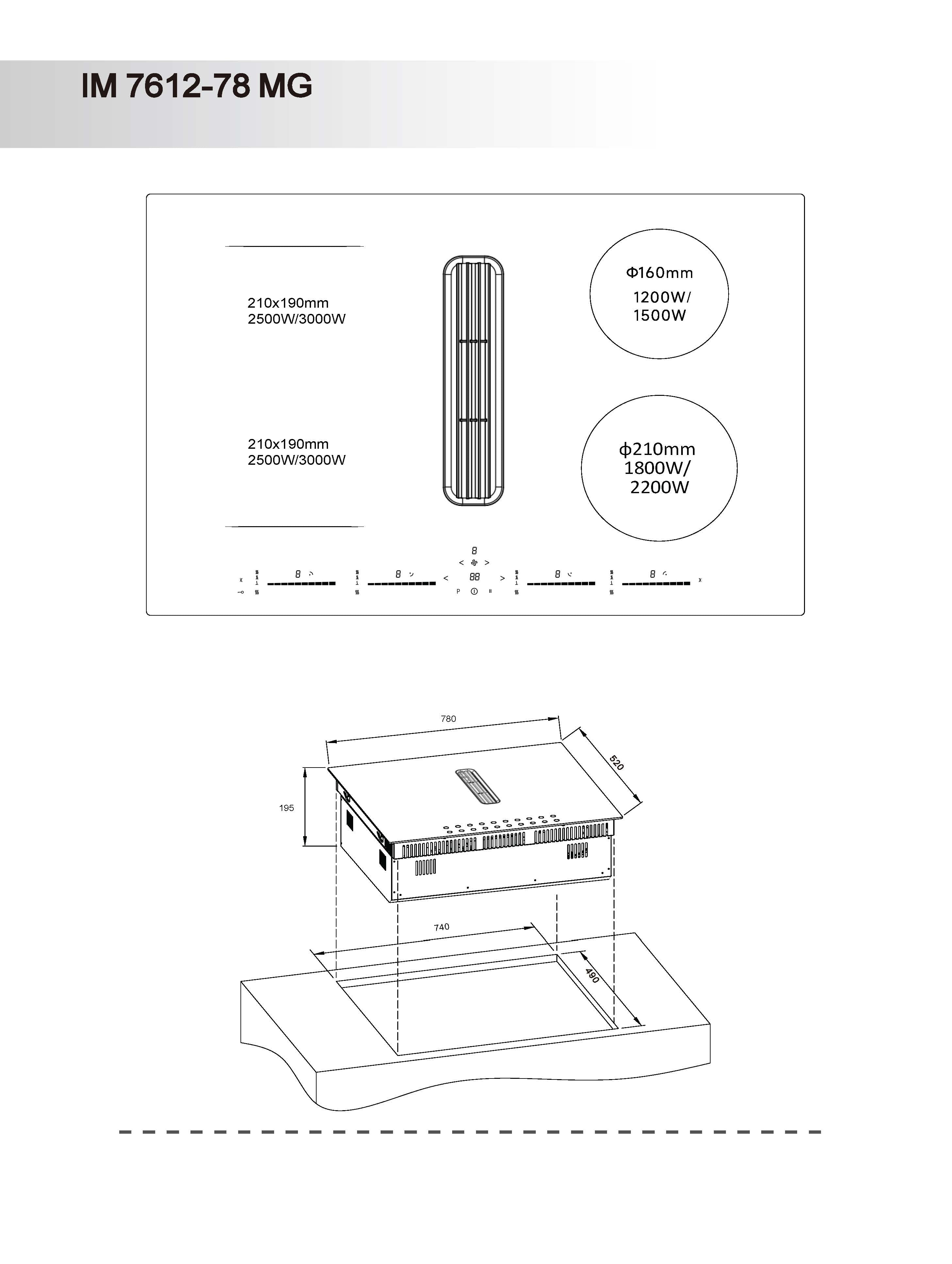 • Effekt: 2x 21x18cm (2,5/3,0 kW (3,5 kW total)) - Ø21 cm (1,8/2,2  kW )- Ø16cm (1,2 / 1,5 kW)