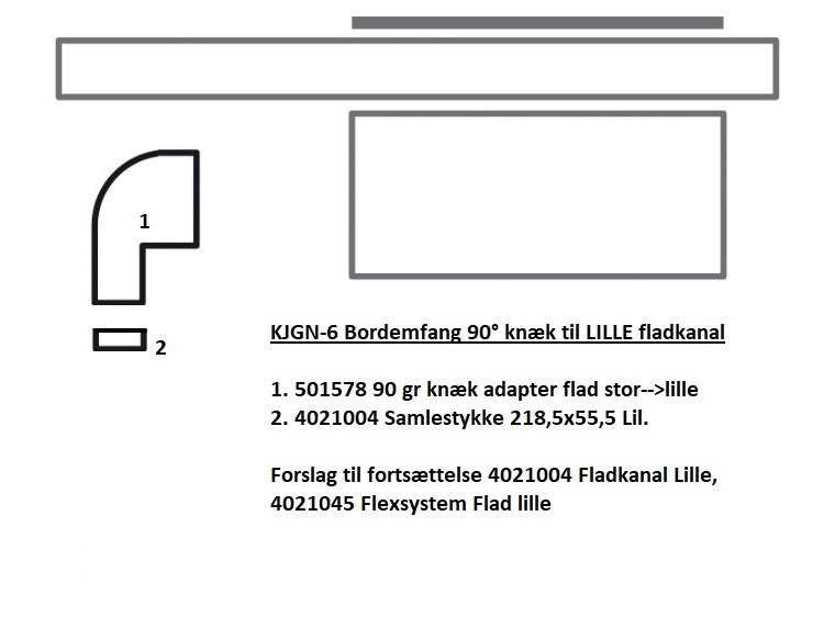 Kanalsæt KJGN-6 Bordemfang 90° knæk til LILLE fladkanal