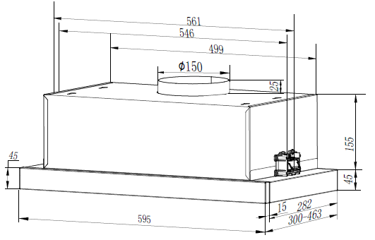 • Aftræksstuds: Ø150 mm med mulighed for reduktion til Ø120 mm