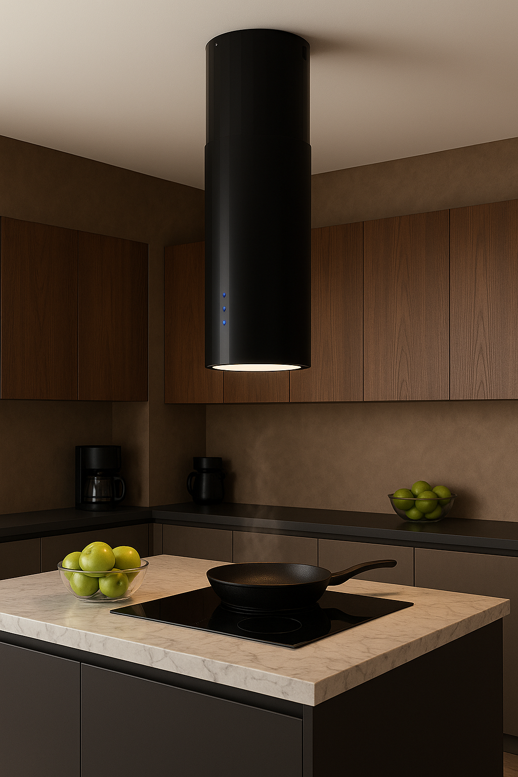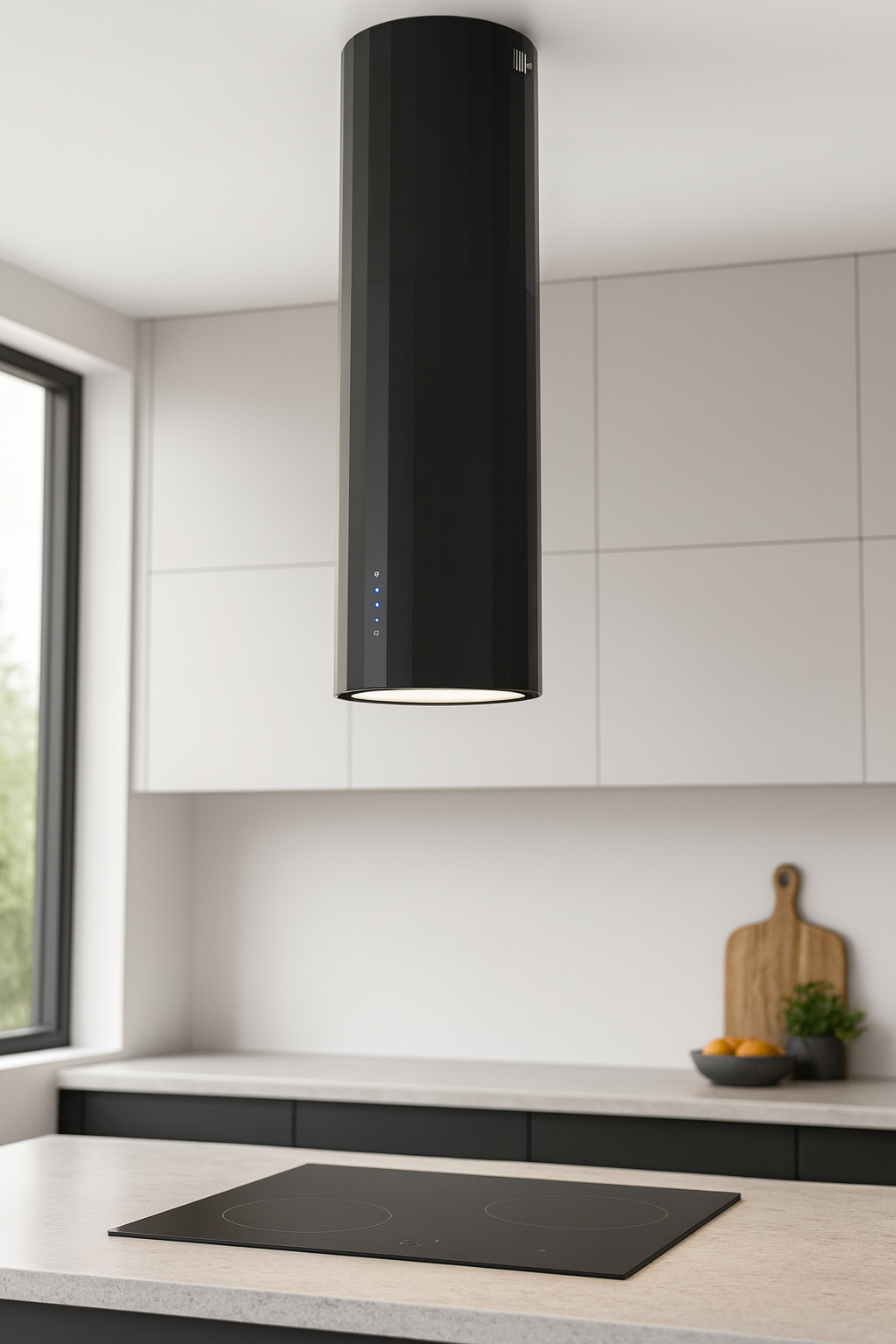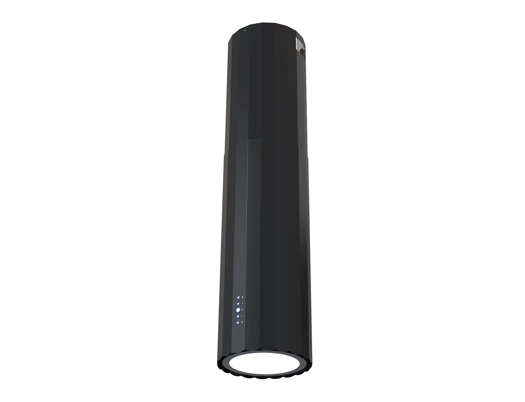 Fritthängande cylindrisk fläkt i unik design från JGN. Endast 35 cm bred.